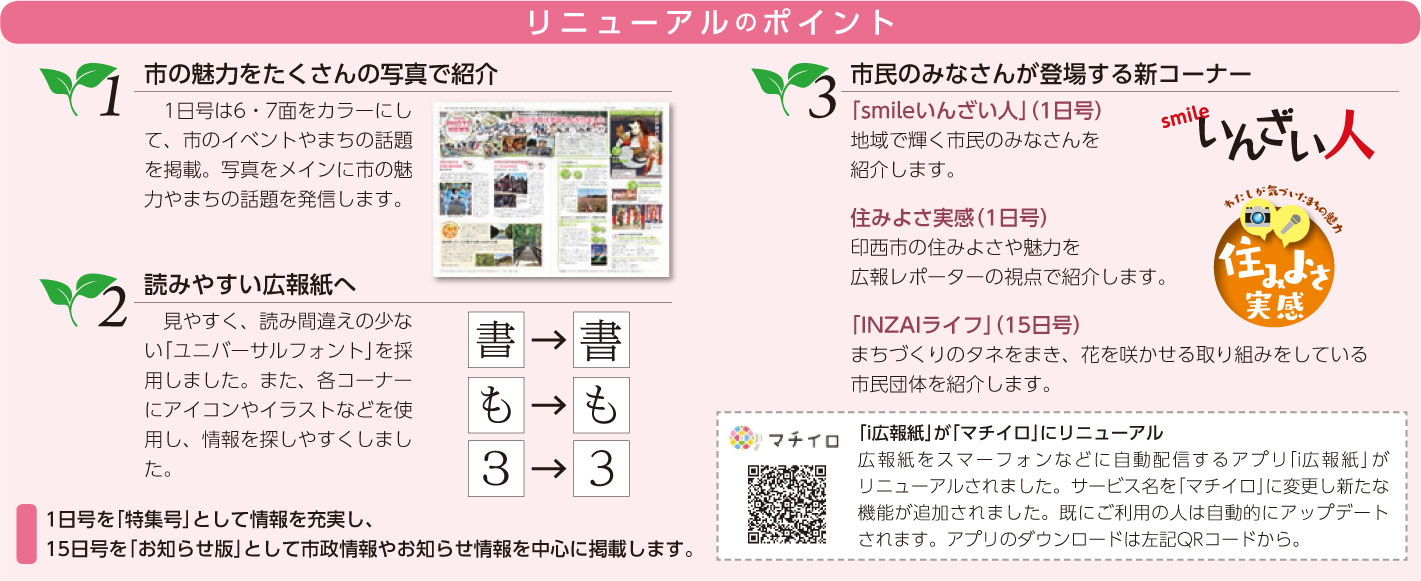 月二回発刊される広報誌「広報いんざい」が大幅にリニューアルしました。